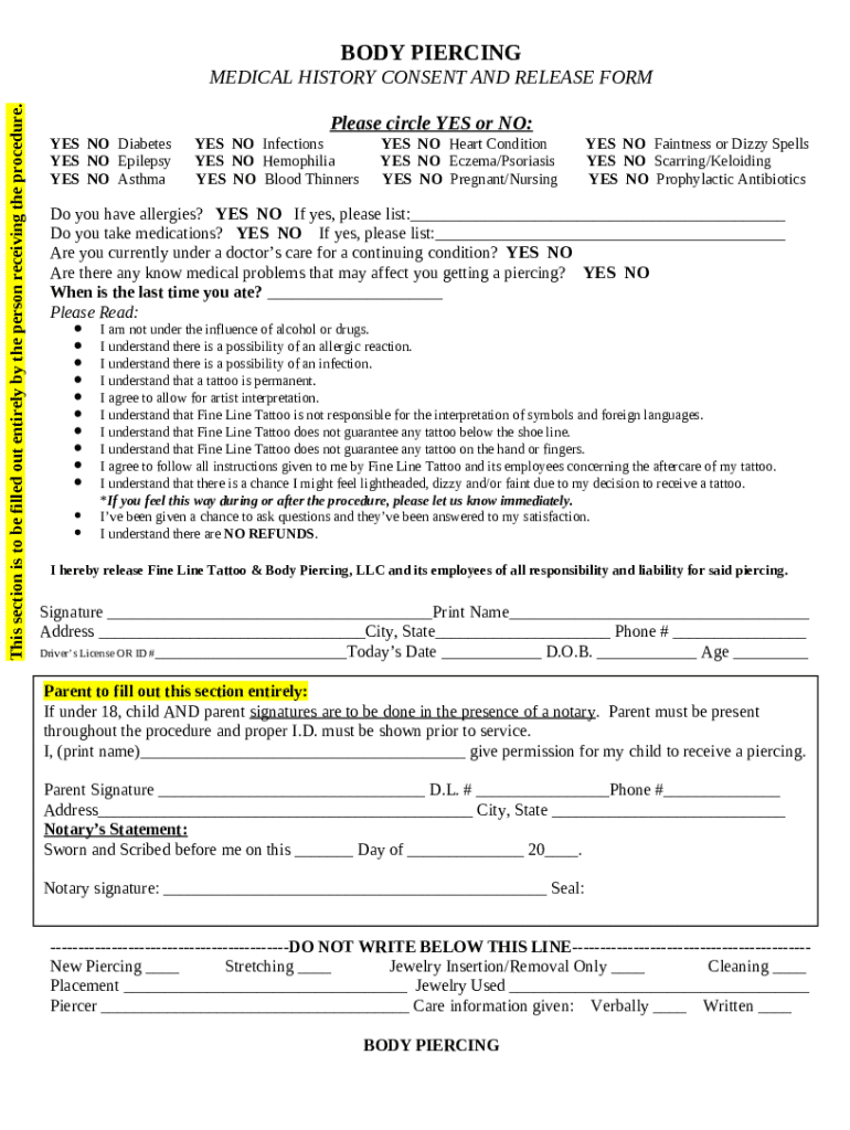 How to fill out Body Piercing Disclosure Statement Consent (PDF)