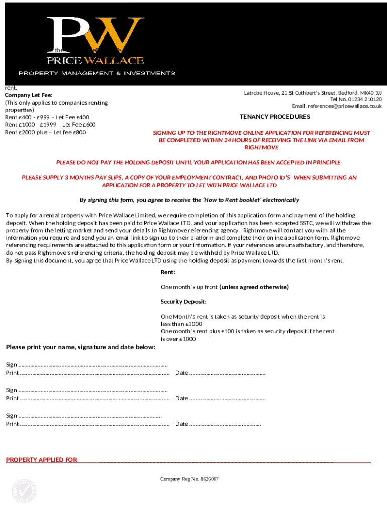 Instructions for the Rightmove Landlord & Tenant Services: Integrated Tenant ... form