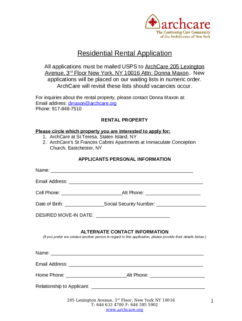 How to fill out All applications must be mailed USPS to ArchCare 205 Lexington Avenue, 3rd Floor New York, NY 10016 Attn: Donna Maxon