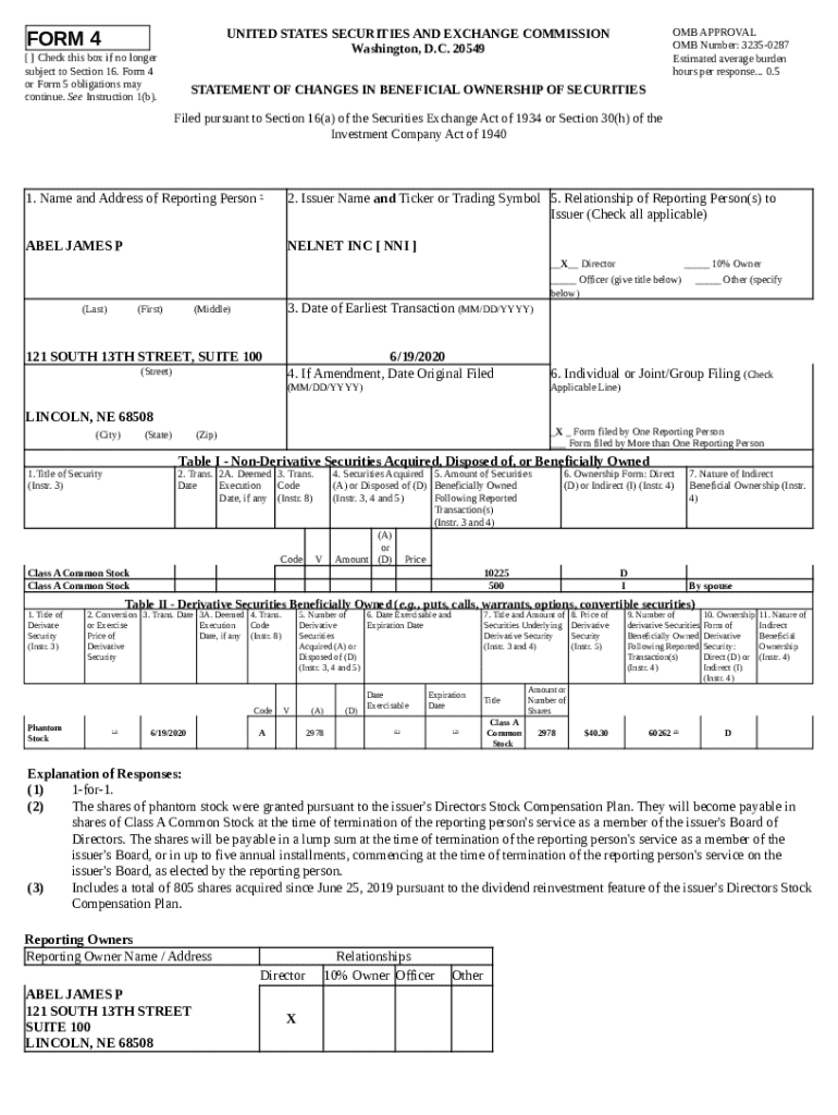 What is NELNET INC (: 4, Received: 06/23/2020 16:21:32) Form?