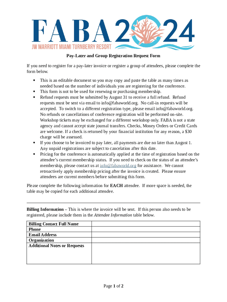 Pay-Later and Group Registration Request FABA 2024 ... template instructions