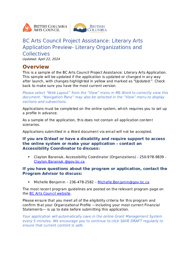 The Organizations and Collectives Application Preview is a Word document that should be submitted to the specific address to provide specific info. It has to be filled-out and signed, which is possible in hard copy, or via a particular software such as PDFfiller. It lets you fill out any PDF or Word document directly from your browser (no software requred), customize it according to your requirements and put a legally-binding e-signature. Right away after completion, user can send the Organizations and Collectives Application Preview to the relevant individual, or multiple recipients via email or fax. The template is printable too thanks to PDFfiller feature and options offered for printing out adjustment. In both digital and physical appearance, your form will have a organized and professional outlook. It's also possible to save it as the template for further use, without creating a new document over and over. You need just to customize the ready document.