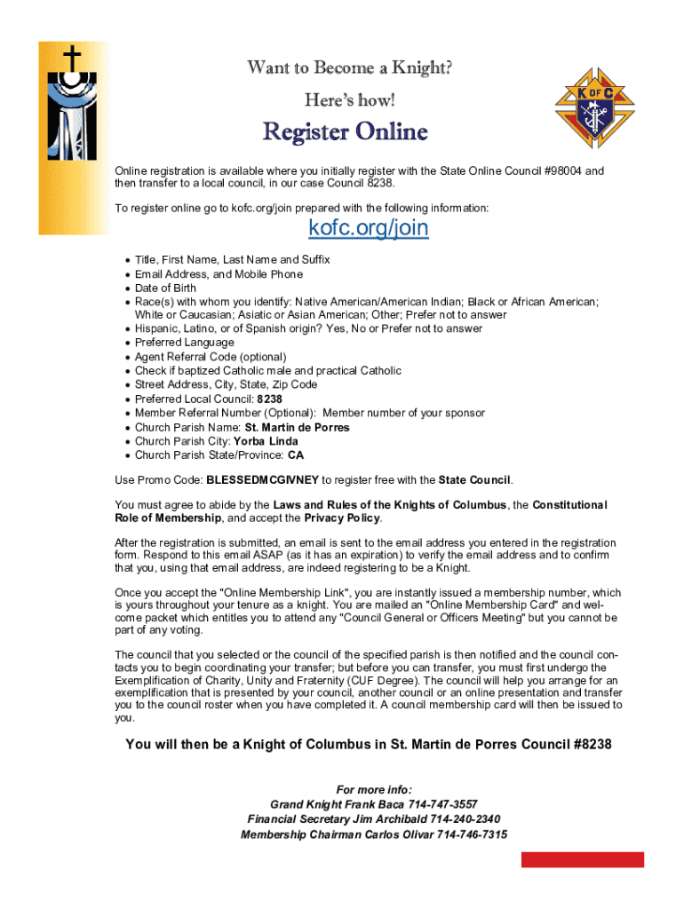 Get the free Online MembershipKnights of Columbus - California State ...