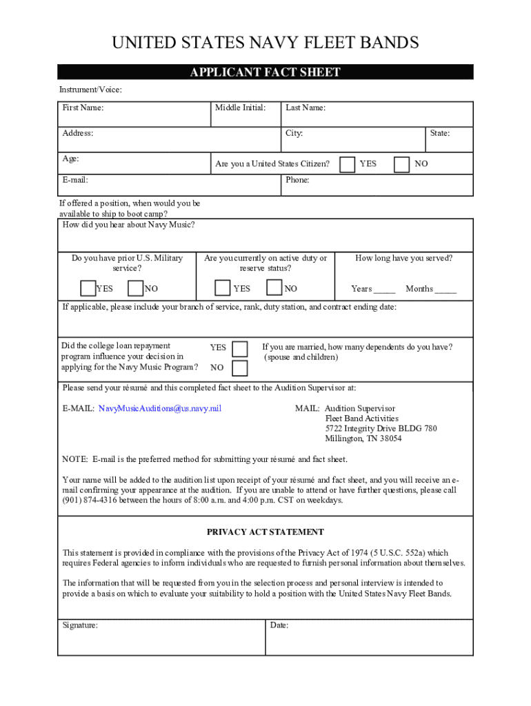 DOD United States Navy Fleet Bands Applicant Fact Sheet Form Versions
