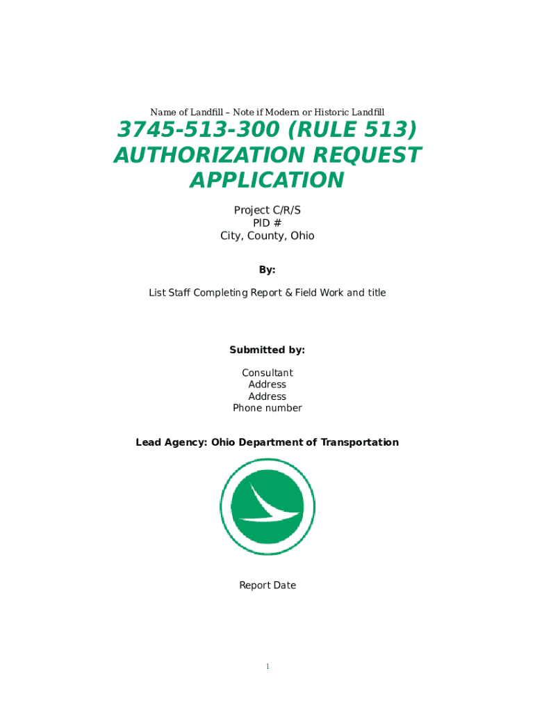 3745-513-300 (Rule 513) Authorization Request Application template instructions