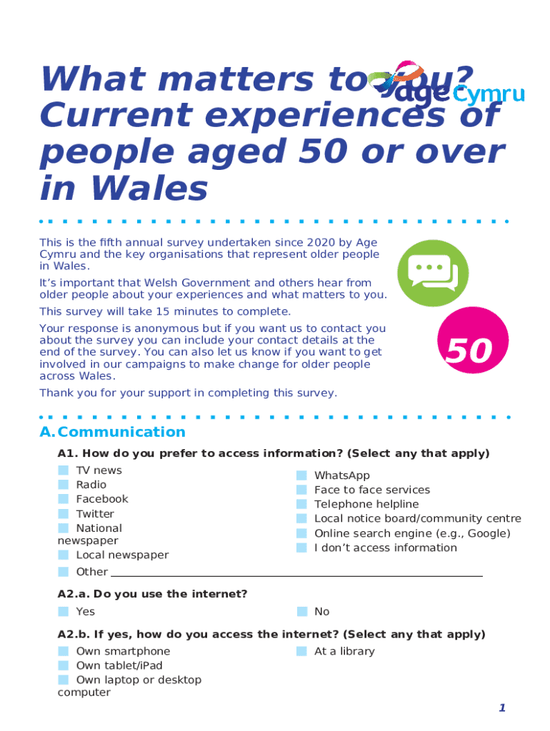 What is Age Cymru launches its fifth annual survey of the over 50s ... Form?