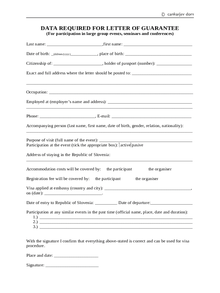Instructions for the form (For participation in large group events, seminars and conferences)