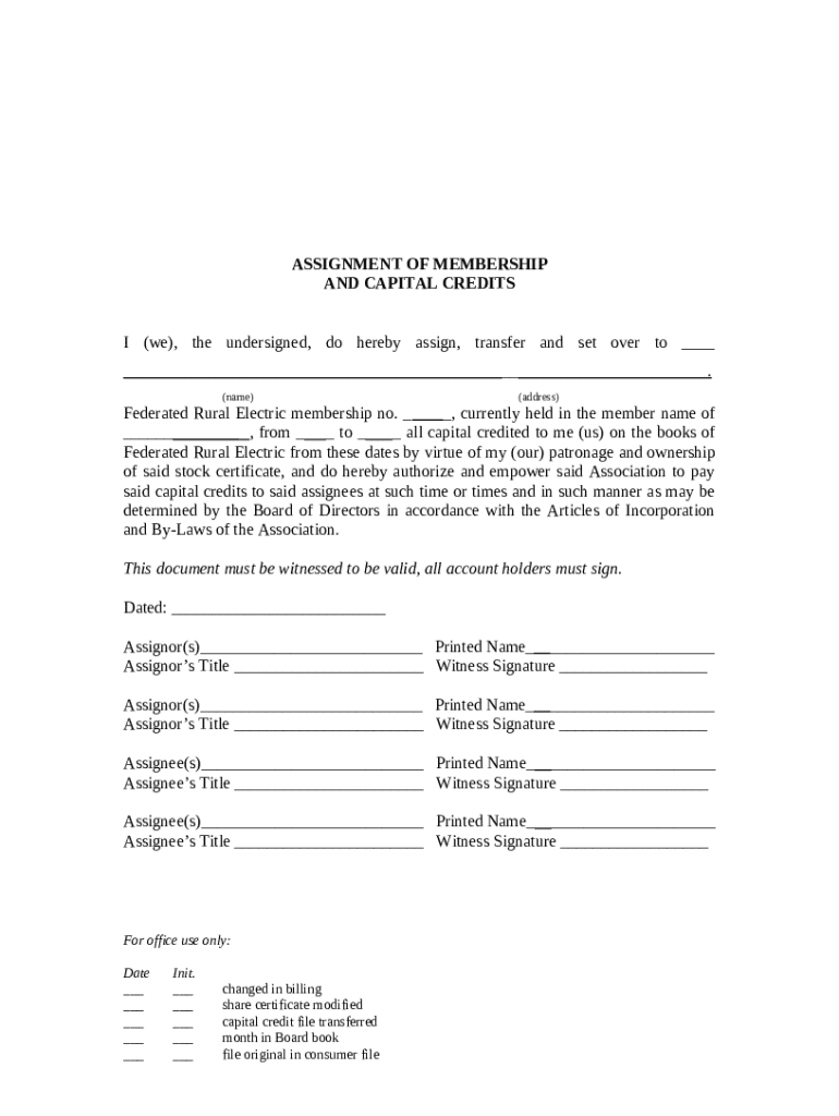 Template ASSIGNMENT OF STOCK CERTIFICATE instructions