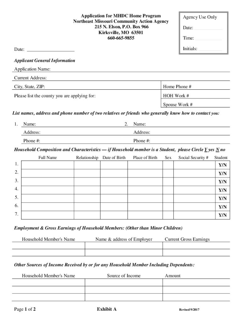 Application for MDC Home Program Northeast Missouri Community Action Agency 215 N. Nelson, P.O. Box 966 Clarksville, MO 63501 6606659855Agency Use Only Date: ___ Time: ___ Initials: ___Date: ___ Applicant