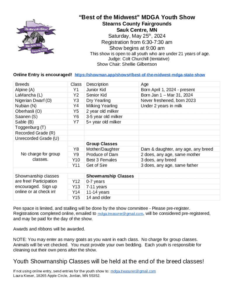 Instructions for the form Best of the Midwest MDGA Youth Show Stearns County ...