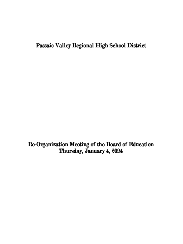 Passaic Valley Regional High School DistrictReOrganization Meeting of the Board of Education Thursday, January 4, 2024ReOrganization Meeting of the Board of Education Thursday, January 4, 2024 ROLL