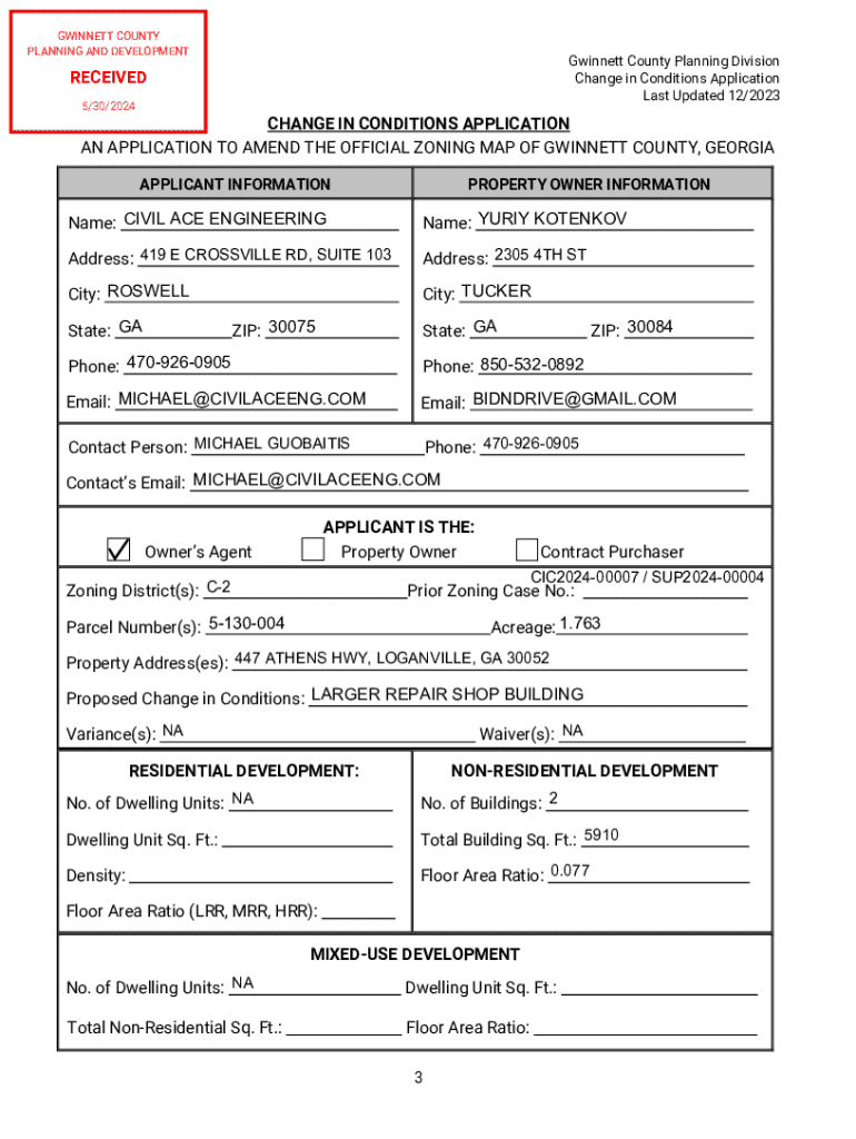 GWINNETT COUNTY PLANNING AND DEVELOPMENTGwinnett County Planning Division Change in Conditions Application Last Updated 12/2023RECEIVED 5/30/2024CHANGE IN CONDITIONS APPLICATION AN APPLICATION TO