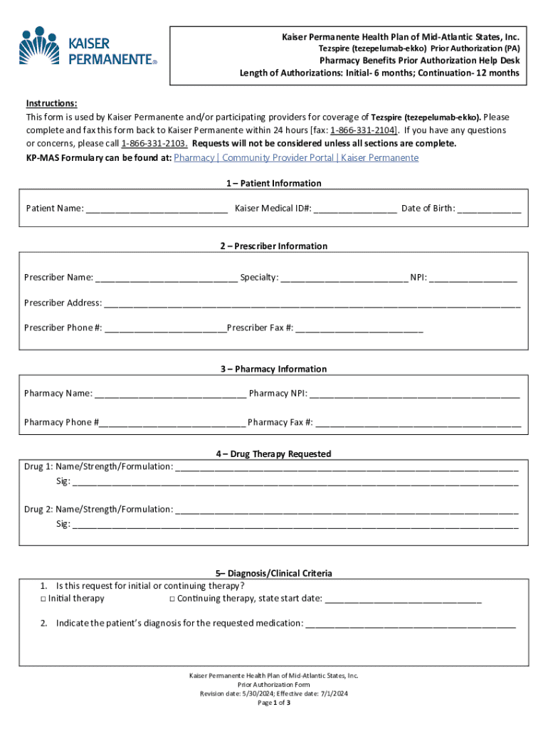 Get the free Prior Authorization (PA) Form for Tezspire (tezepelumab-ekko). Prior Authorization (...