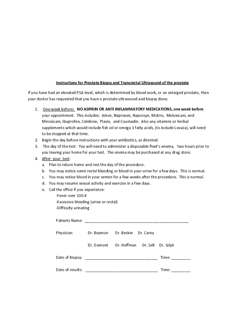 Get the free Instructions for Prostate Biopsy and Transrectal Ultrasound of the ...