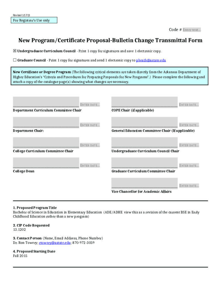 How to fill New Program/Certificate Proposal-Bulletin ... word template