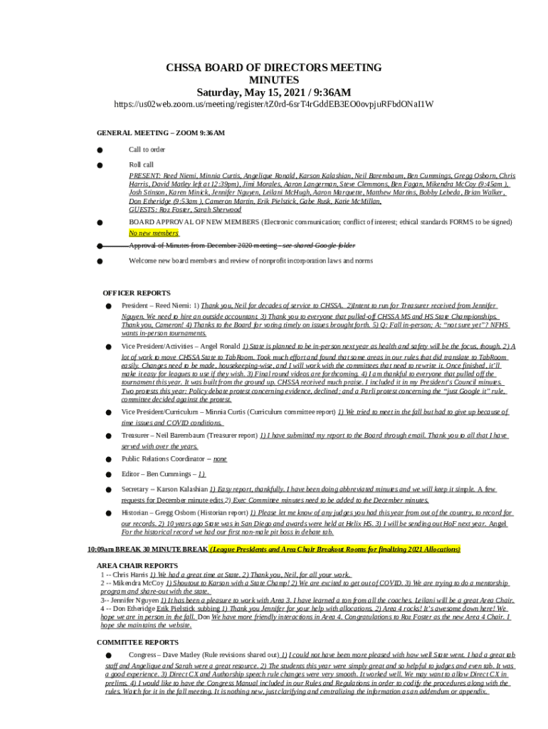 The PRESENT: Reed Niemi, Minnia Curtis, Angelique Ronald, Karson Kalashian, Neil Barembaum, Ben Cummings, Gregg Osborn, Chris Harris, David Matley left at 12:39pm), Jimi Morales, Aaron Langerman, Steve Clemmons, Ben Fagan, Mikendra McCoy (9:45am ), Josh is a fillable form in MS Word extension you can get filled-out and signed for certain needs. Next, it is furnished to the relevant addressee to provide specific information of any kinds. The completion and signing can be done manually in hard copy or using an appropriate tool like PDFfiller. These tools help to complete any PDF or Word file online. It also lets you customize it depending on your requirements and put an official legal e-signature. Once you're good, you send the PRESENT: Reed Niemi, Minnia Curtis, Angelique Ronald, Karson Kalashian, Neil Barembaum, Ben Cummings, Gregg Osborn, Chris Harris, David Matley left at 12:39pm), Jimi Morales, Aaron Langerman, Steve Clemmons, Ben Fagan, Mikendra McCoy (9:45am ), Josh to the recipient or several ones by email or fax. PDFfiller includes a feature and options that make your blank printable. It includes different settings when printing out appearance. It does no matter how you will file a document - physically or by email - it will always look neat and organized. To not to create a new editable template from the beginning every time, turn the original Word file into a template. After that, you will have a rewritable sample.