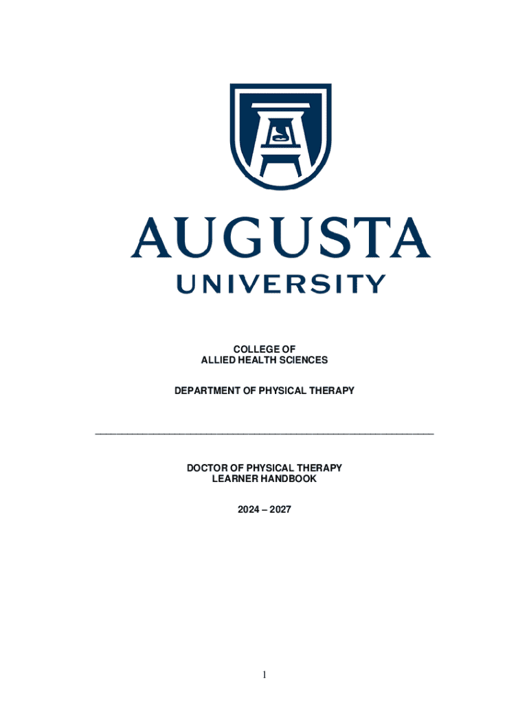 COLLEGE OF ALLIED HEALTH SCIENCES DEPARTMENT OF PHYSICAL THERAPY___DOCTOR OF PHYSICAL THERAPY LEARNER HANDBOOK 2024 20271TABLE OF CONTENTS Introduction and Purpose ......................................................................................