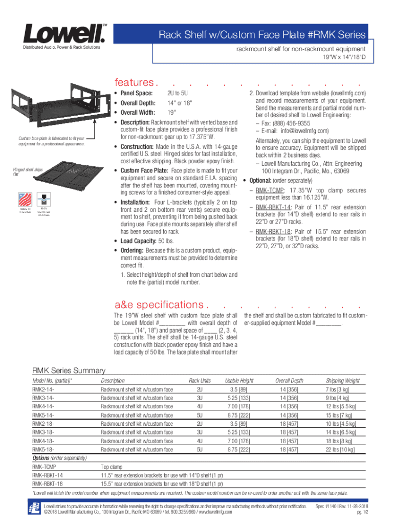 Get the free features a&e specifications Rack Shelf w/Custom Face Plate #RMK ...