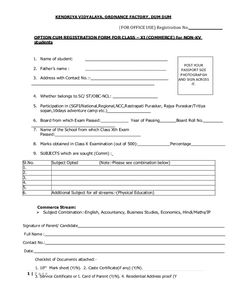 Register for Class XI Commerce at Kendriya Vidyalaya Dum Dum for the academic year 2022-23. Ensure all details are filled accurately. Apply now!