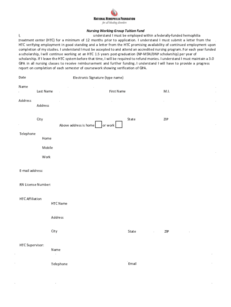 Get the free Nursing Working Group Tuition Fund