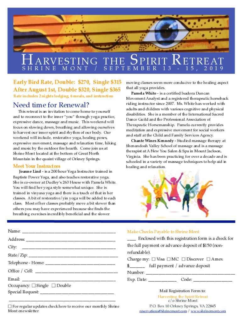 S H R I N EM O N T/THE P IR IT RE TREATS E P T E M B ER Early Bird Rate, Double: $270, Single $315
