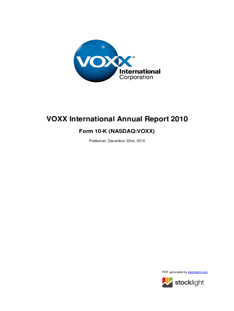 Get the free Voxx International Annual Report 2010