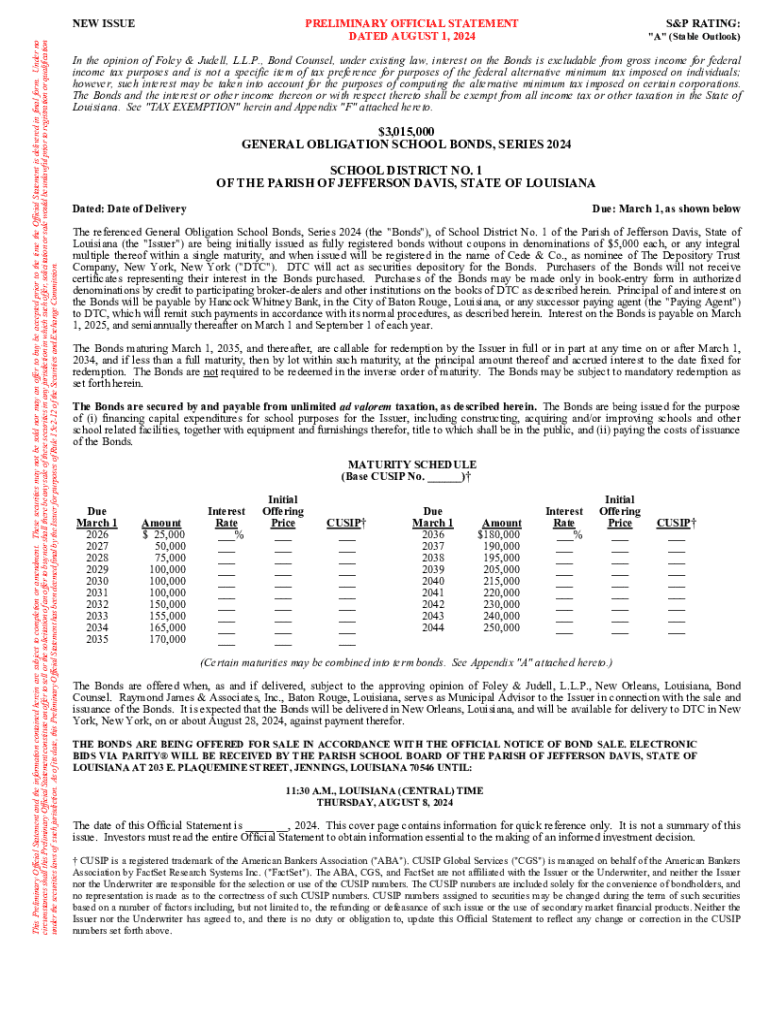 This Preliminary Official Statement and the information contained herein are subject to completion or amendment. These securities may not be sold nor may an offer to buy be accepted prior to the time