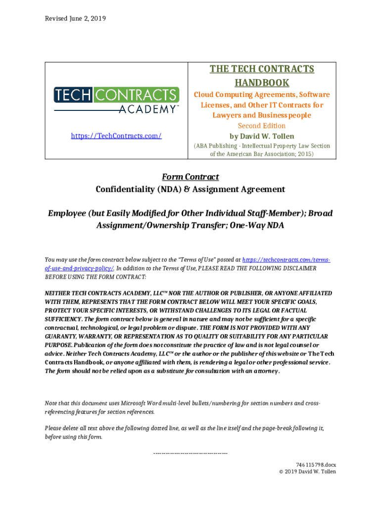 What is David Tollen's Post - The Tech Contracts Handbook Form?