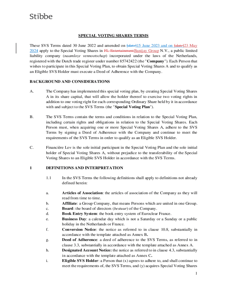 2024 apply to the Special Voting Shares in FL EntertainmentBanijay Group N.V., a