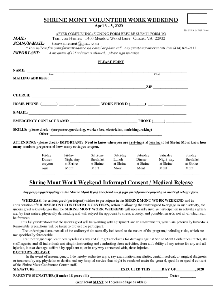 Volunteer Work Weekend is not the form you're looking for?Search for another form here.