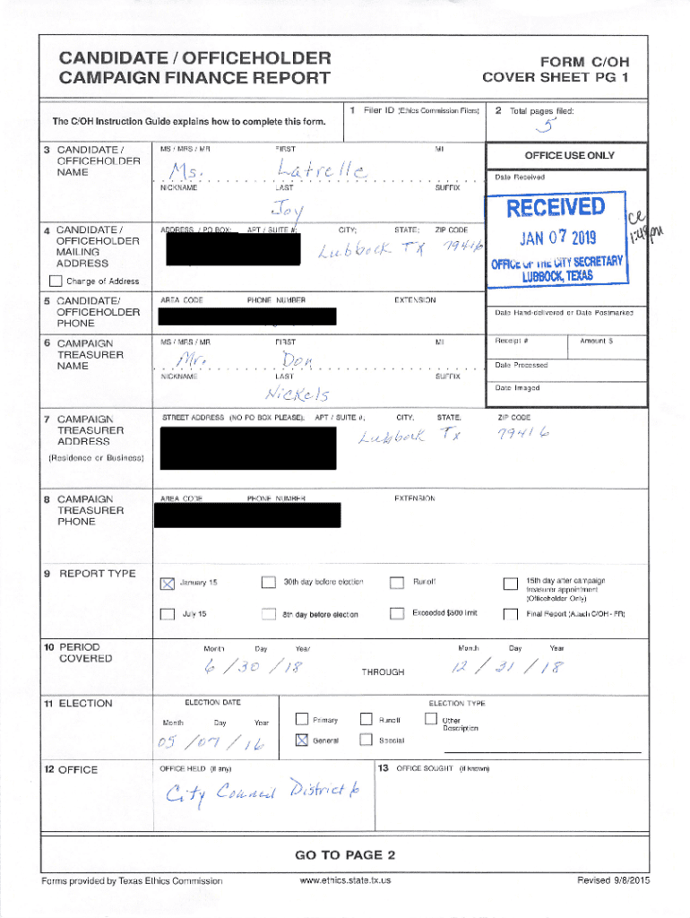 Get the free Koza Joseph-July 15-Campaign Finance Reportttt