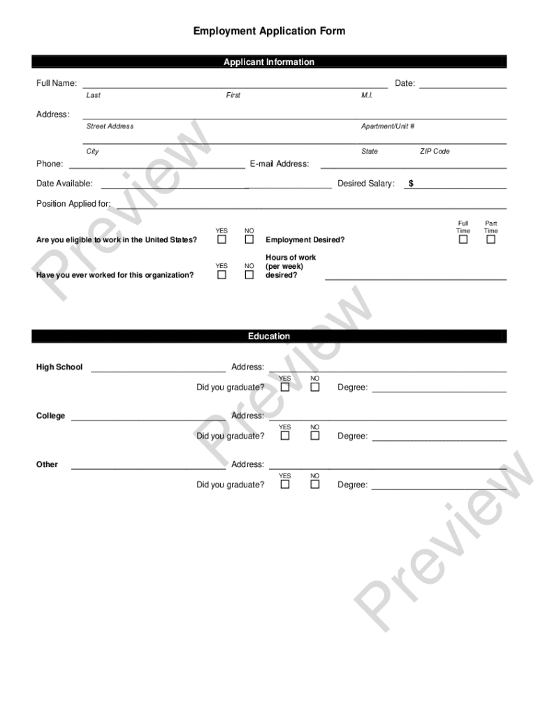 Get the free Employment Application Form