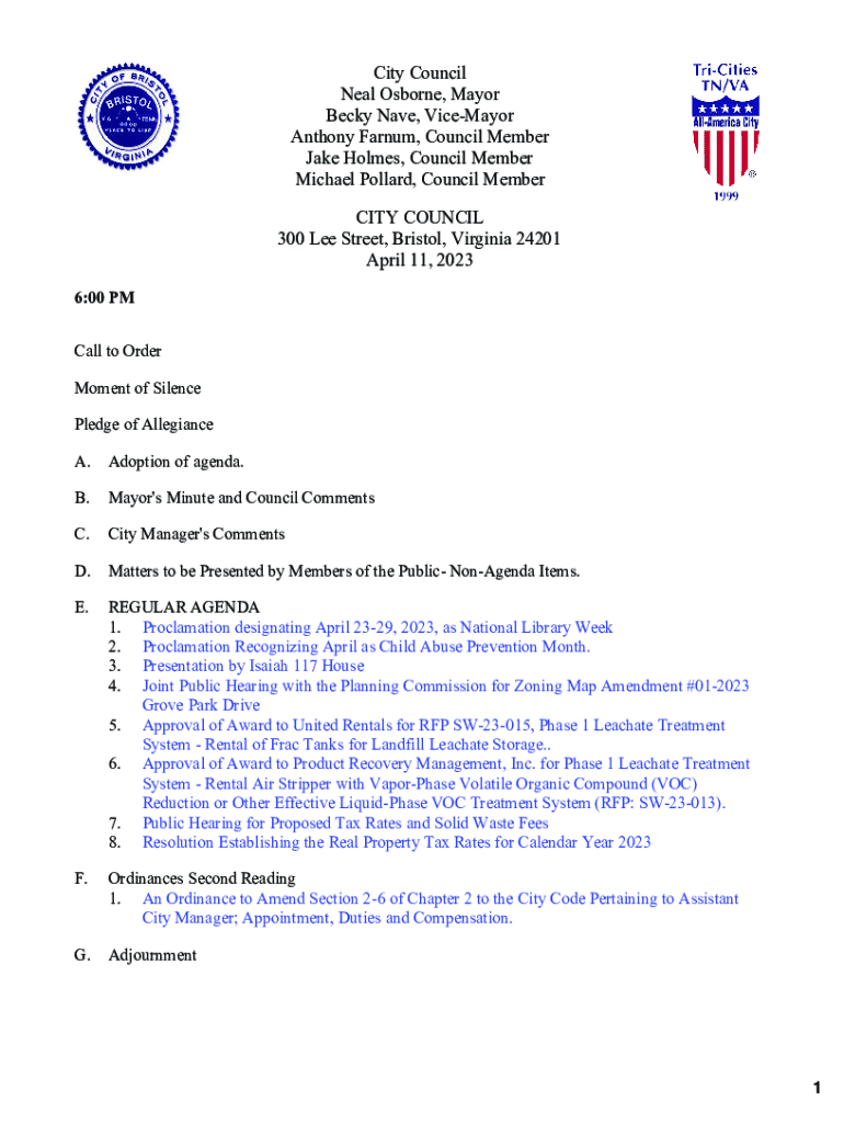 City Council Neal Osborne, Mayor Becky Nave, Icemaker Anthony Barnum, Council Member Jake Holmes, Council Member Michael Pollard, Council Member CITY COUNCIL 300 Lee Street, Bristol, Virginia 24201