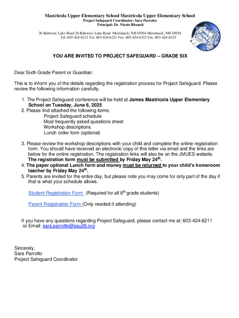 Join us for Project Safeguard on June 6, 2024, at JM UES. Register for workshops and enjoy lunch with your child. Don\'t miss this opportunity!