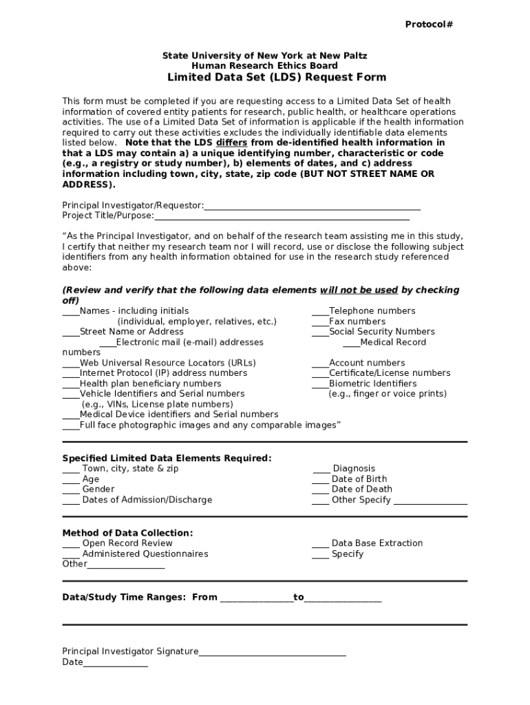 The Limited Data Set (LDS) Request is a Word document you can get filled-out and signed for specific needs. Then, it is furnished to the actual addressee to provide specific details of certain kinds. The completion and signing is able manually or via a suitable tool e. g. PDFfiller. Such services help to send in any PDF or Word file online. It also lets you customize its appearance for your requirements and put legit digital signature. Upon finishing, the user ought to send the Limited Data Set (LDS) Request to the recipient or several of them by mail and even fax. PDFfiller provides a feature and options that make your blank printable. It includes different options for printing out. No matter, how you file a form - physically or by email - it will always look professional and organized. In order not to create a new editable template from the beginning over and over, make the original document as a template. Later, you will have an editable sample.