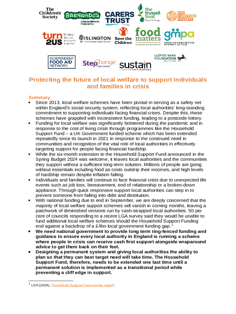 What is Protecting the future of local welfare to support individuals and families in crisis Form?