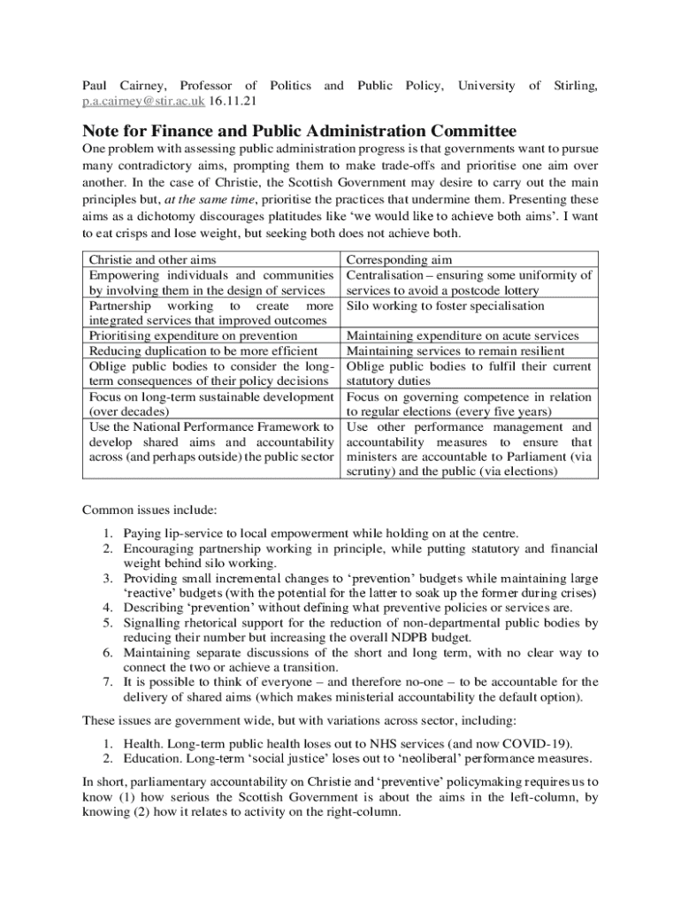 p.a.cairney@stir.ac.uk 16.11.21Note for Finance and Public Administration Committee