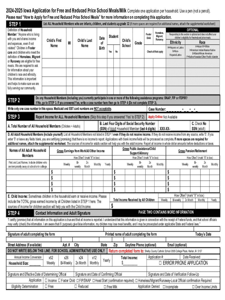 20242025 Iowa Application for Free and Reduced Price School Meals/Milk Complete one application per household. Use a pen (not a pencil). Please read How to Apply for Free and Reduced Price School