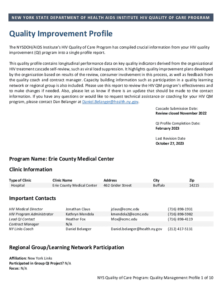 NEW YORK STATE DEPARTMENT OF HEALTH AIDS INSTITUTE HIV QUALITY OF CARE PROGRAMQuality Improvement Profile The NYSDOH/AIDS Institutes HIV Quality of Care Program has compiled crucial information from