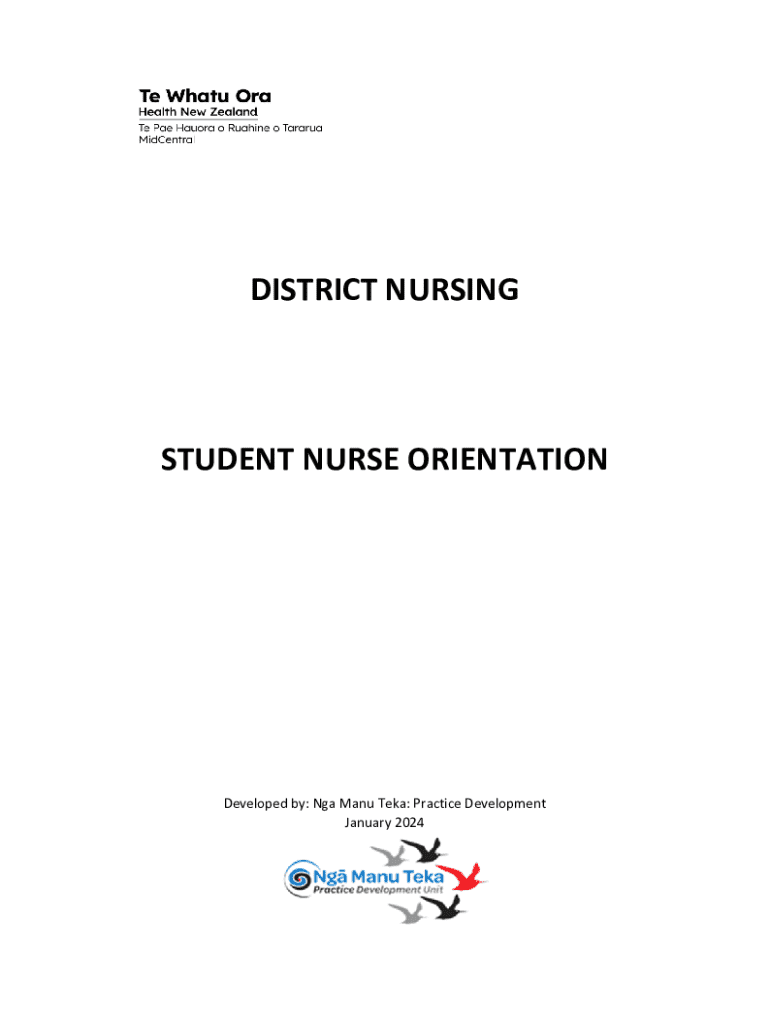 DISTRICT NURSINGSTUDENT NURSE ORIENTATIONDeveloped by: Nga Manu Teka: Practice Development January 2024Page 2 of 21Contents.........................................................................................