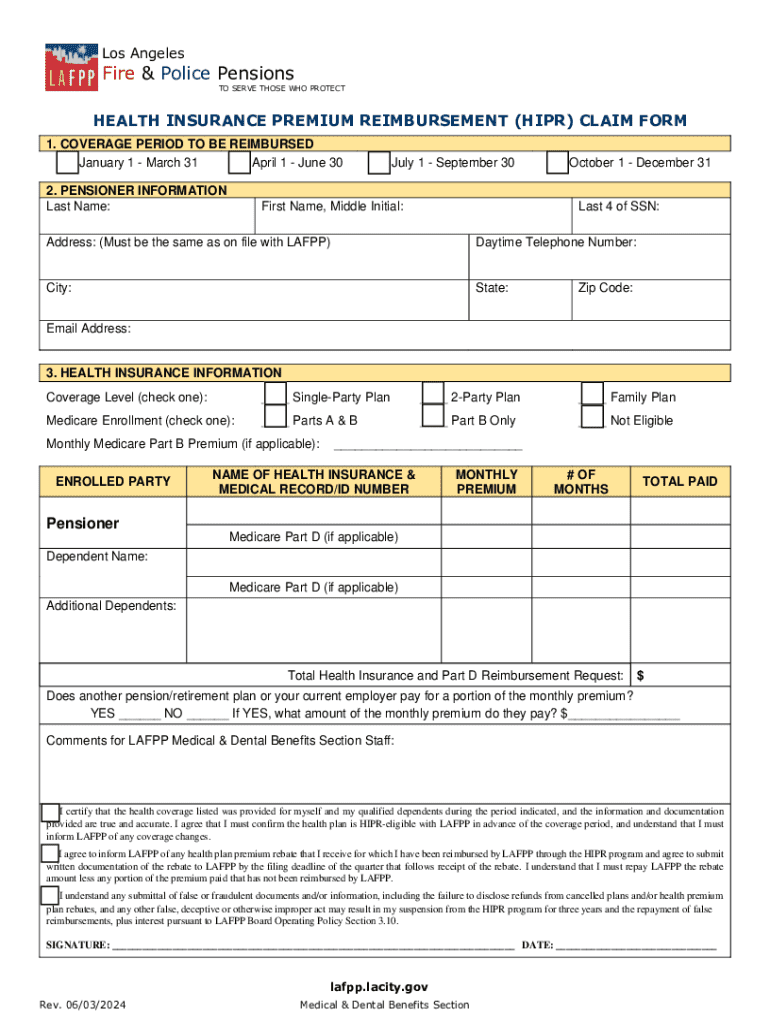 Get the free Health Insurance Premium Reimbursement (HIPR) Claim Form