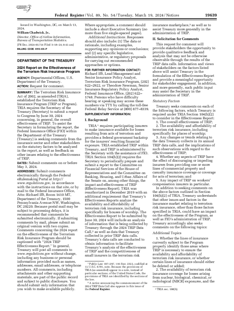 Federal Register / Vol. 89, No. 54 / Tuesday, March 19, 2024 / Notices Issued in Washington, DC, on March 13, 2024. William Chadwick, Jr., Director, Office of Airline Information, Bureau of Transportation