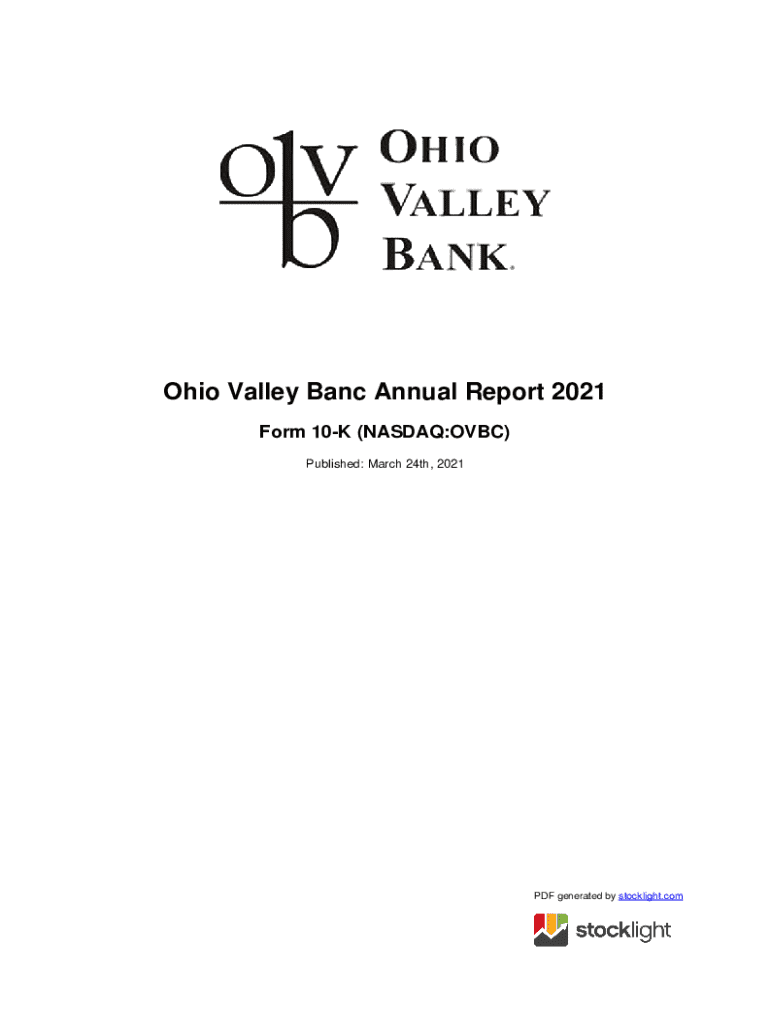 Ohio Valley Band Annual Report 2021 Form 10K (NASDAQ:OBC) Published: March 24th, 2021PDF generated by stock light.counted STATES SECURITIES AND EXCHANGE COMMISSION Washington, D.C. 20549 FORM 10K