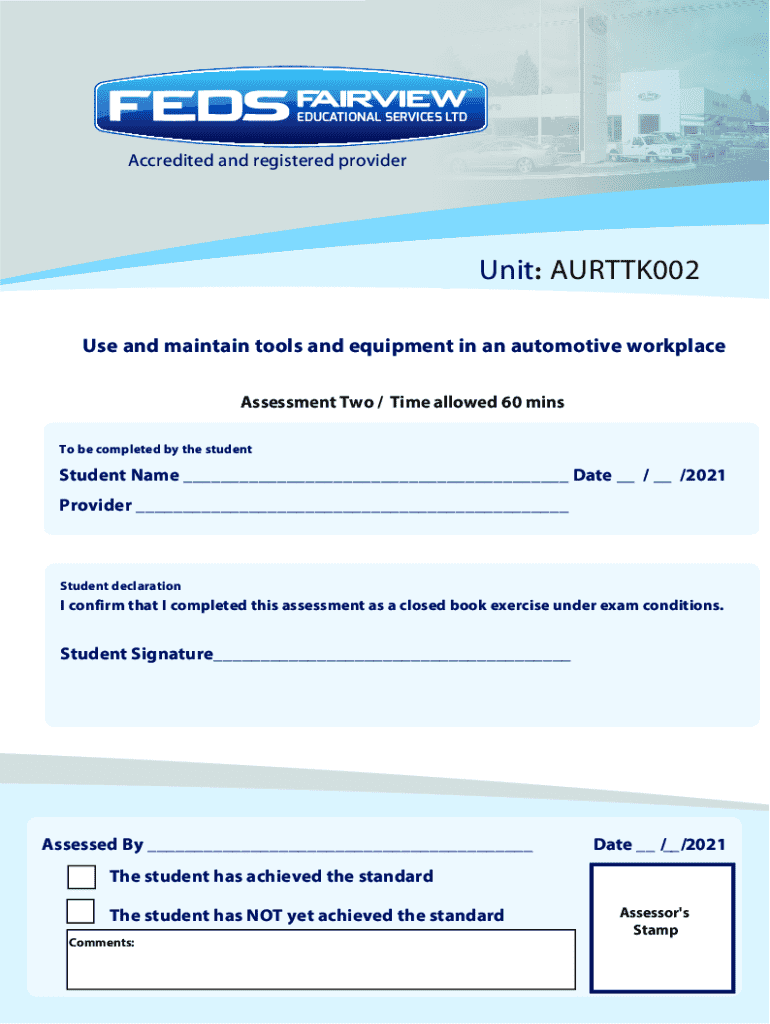 Get the free AURTTK002 El.1 Select and use tools and equipment Test ...
