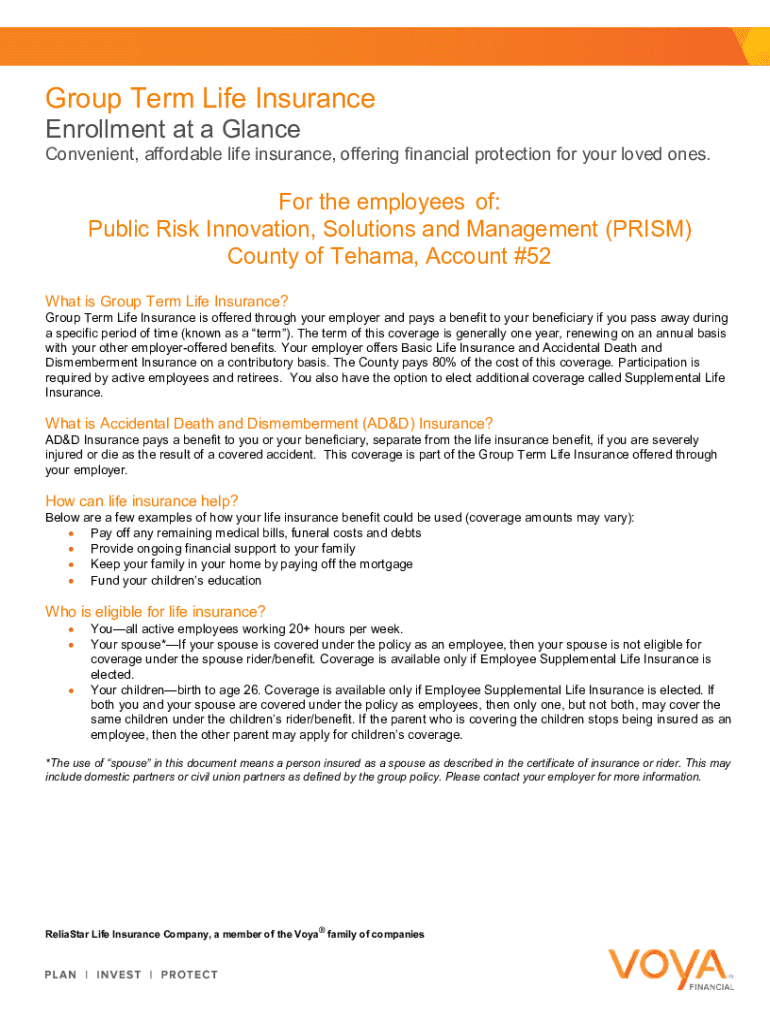 Group Term Life Insurance Enrollment at a GlanceConvenient, affordable life insurance, offering financial protection for your loved ones.For the employees of: Public Risk Innovation, Solutions and