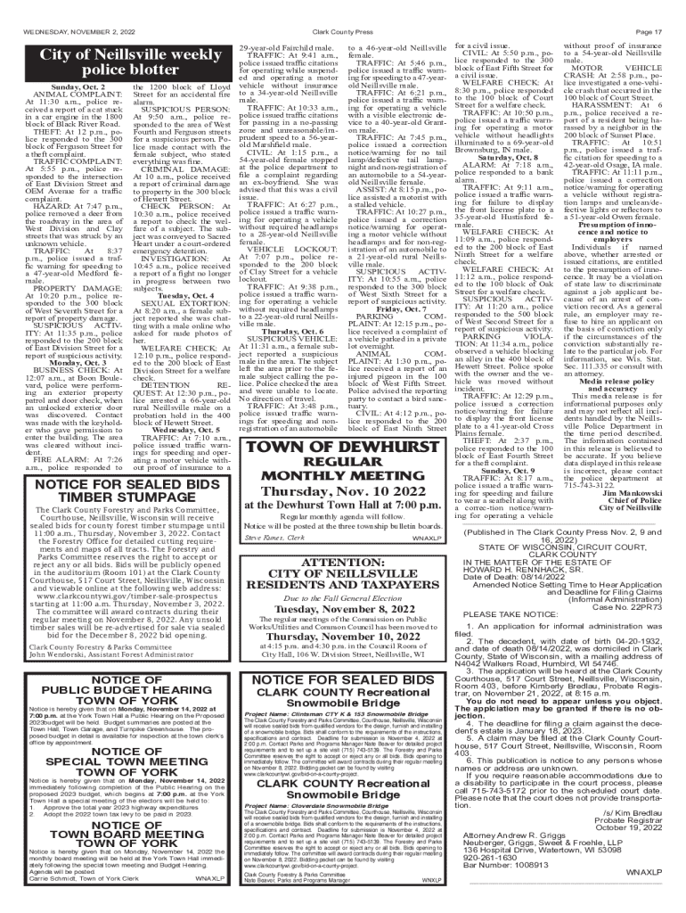 Explore the weekly police blotter from Nashville, covering incidents and local government notices from November 2022, including budget meetings and public hearings.