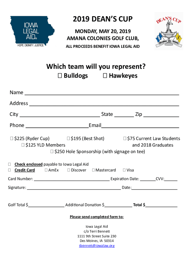 Join the 2019 Dean\'s Cup and help Iowa Legal Aid. Register now to represent your team and contribute to a great cause. Various sponsorship options available.