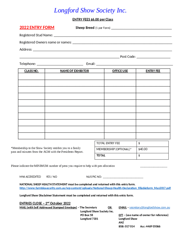 What is Longford Show Entry Form?