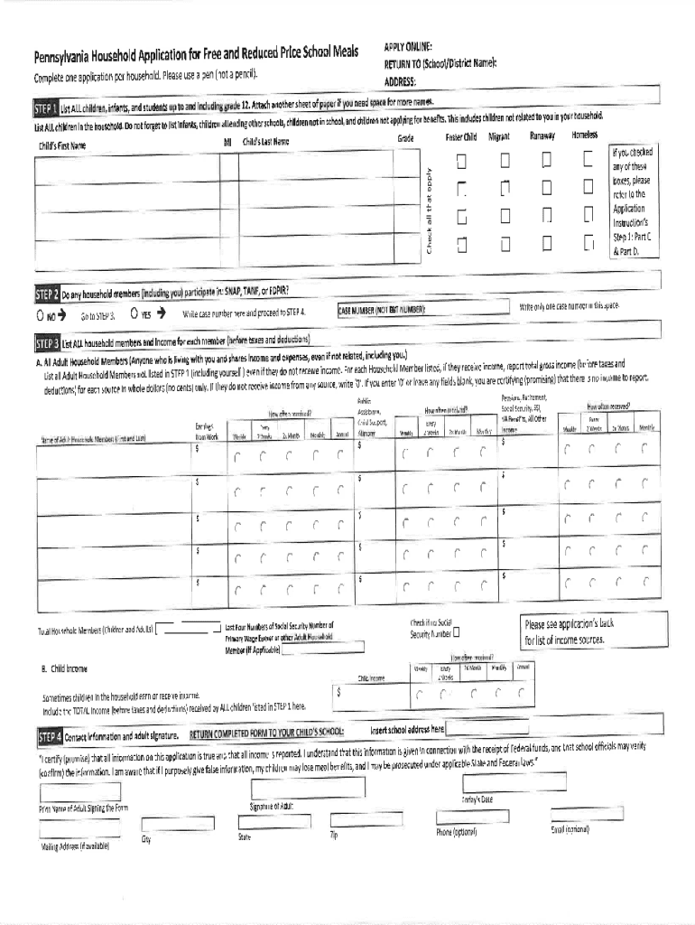 ADDRESS:PennsylvaniaHouseholdApplicationfor Free and ReducedPriceSchoolMeals
