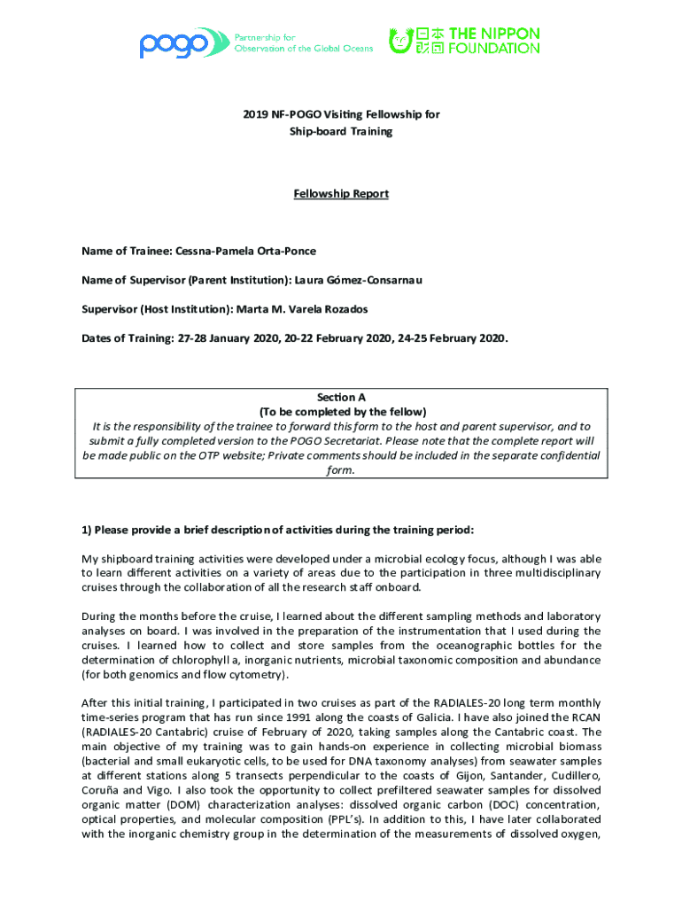 Shipboard TrainingFellowship Reportage of Trainee: Cessna Pamela OrtaPonce